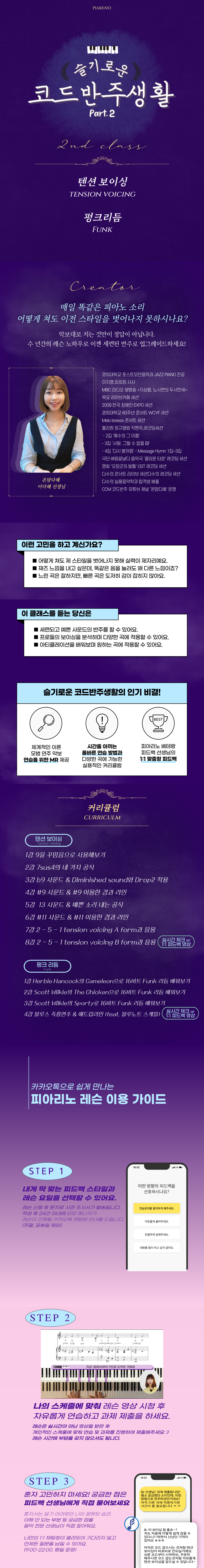 A. 피아리노 <슬기로운 코드반주 생활 2> 클래스는 반주를 어느정도 하시지만 세련된 반주법을 위한 강의입니다. 기초부터 탄탄하게 코드 반주를 배우고 싶으신 분들께는 <슬기로운 코드반주 생활 1>을 추천드립니다.