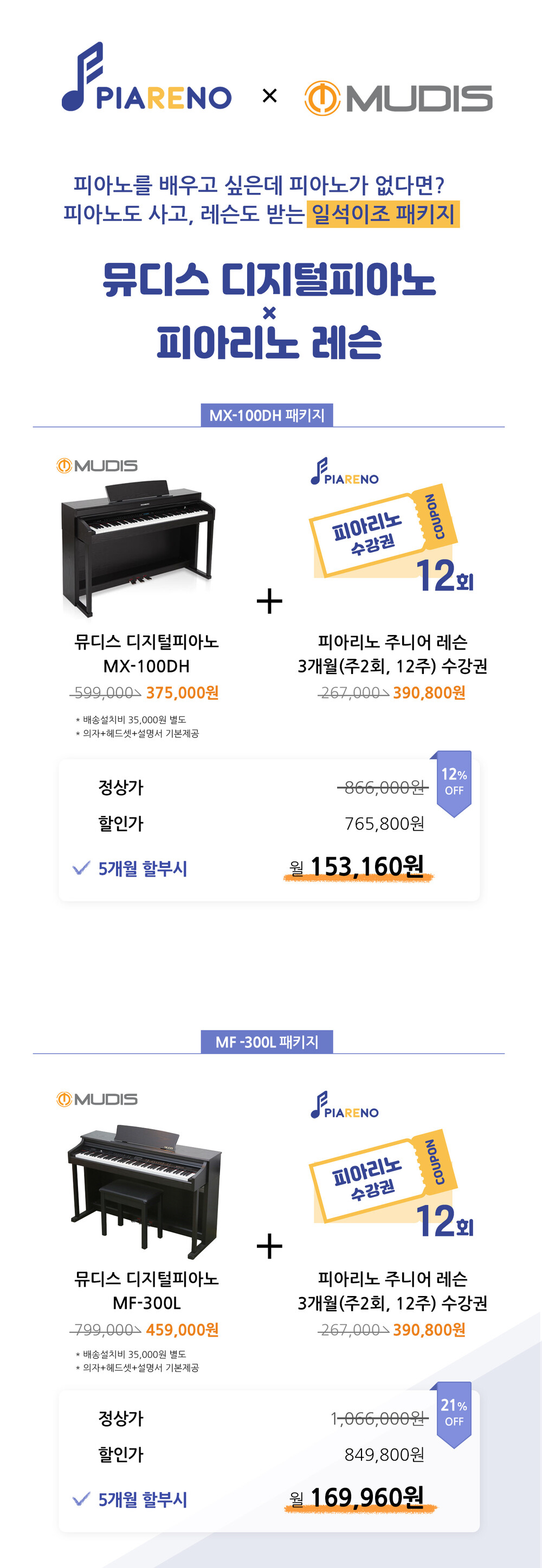 뮤디스 피아노 구매시 주니어 클래스 옵션 B 8주 이용권 드립니다.