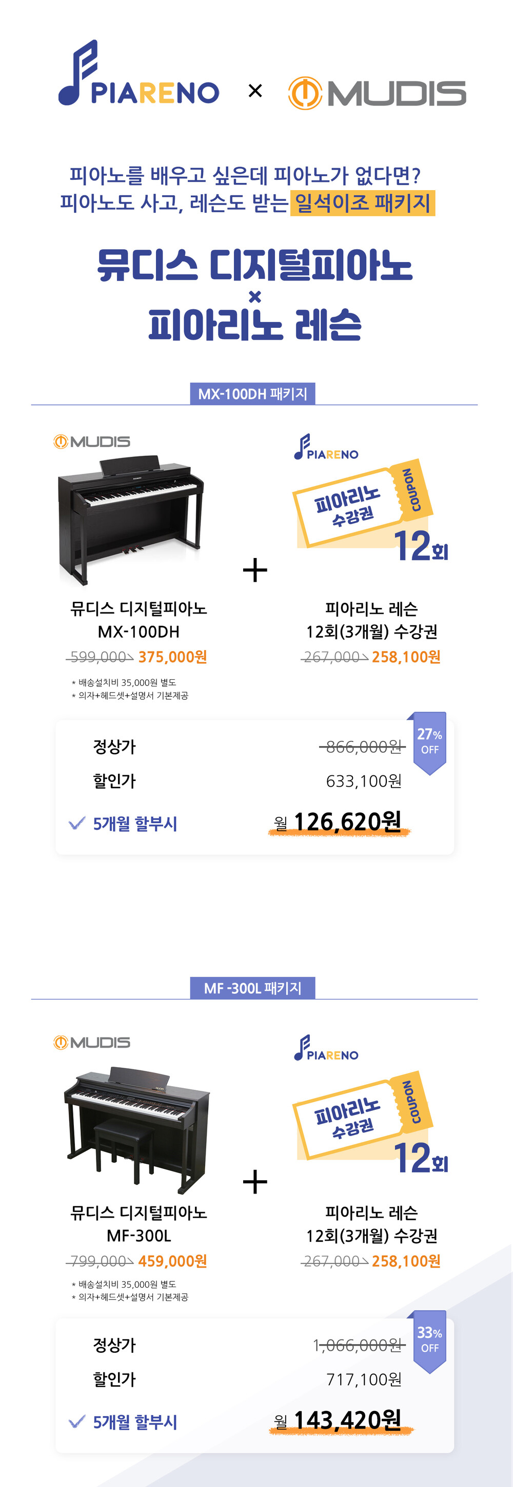 뮤디스 피아노&피아리노 3개월 수강권(12주) 패키지