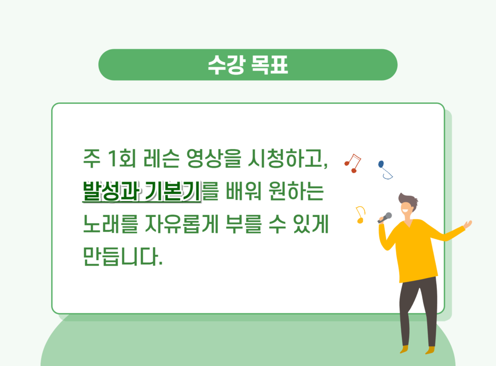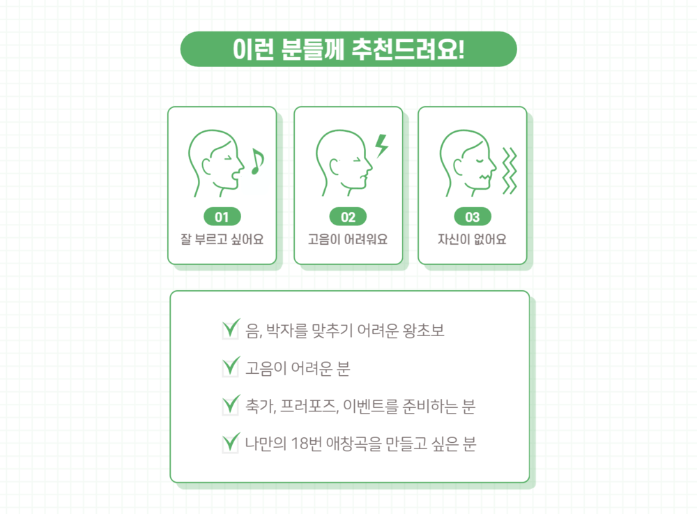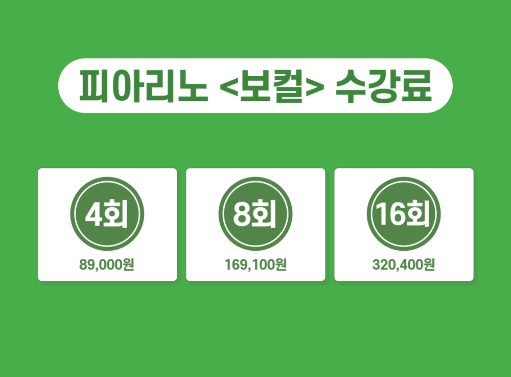 ✅ 레슨 곡은 보컬(노래)을 배운 기간과 선정한 곡의 난이도를 고려하여 선생님과 조율 할 수 있습니다.